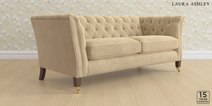 6.12.13 Buy Chatsworth Button Back by Laura Ashley 3 Seater Small Sofa Peyton Sable Natural Straight Brass Castor - Chestnut from the Next UK online shop Click here to use our accessible website