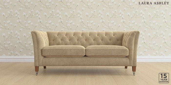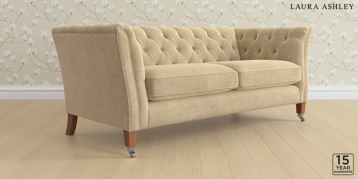 6.12.13 Buy Chatsworth Button Back by Laura Ashley 3 Seater Small Sofa Peyton Sable Natural Straight Chrome Castor - Teak from the Next UK online shop Click here to use our accessible website