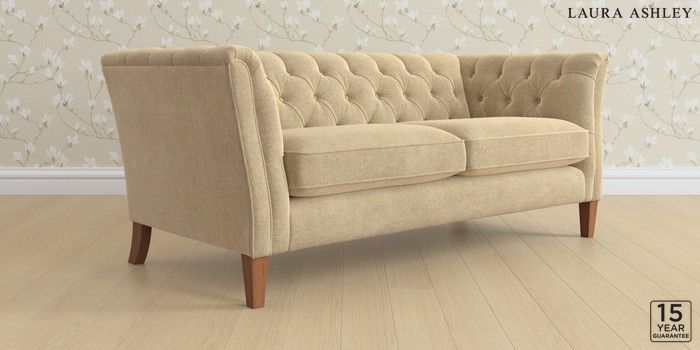 6.12.13 Buy Chatsworth Button Back by Laura Ashley 3 Seater Small Sofa Peyton Sable Natural Straight Mid - Teak from the Next UK online shop Click here to use our accessible website