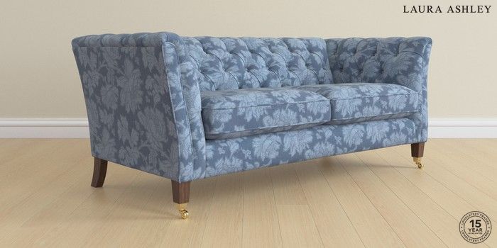6.12.1 Buy Chatsworth Button Back by Laura Ashley 3 Seater Small Sofa Tamara Dusky Seaspray Blue Straight Brass Castor - Chestnut from the Next UK online shop Click here to use our accessible website