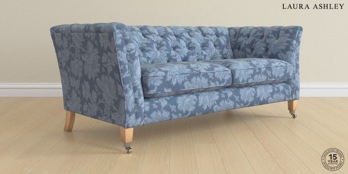 6.12.1 Buy Chatsworth Button Back by Laura Ashley 3 Seater Small Sofa Tamara Dusky Seaspray Blue Straight Chrome Castor - Light Oak from the Next UK online shop Click here to use our accessible website