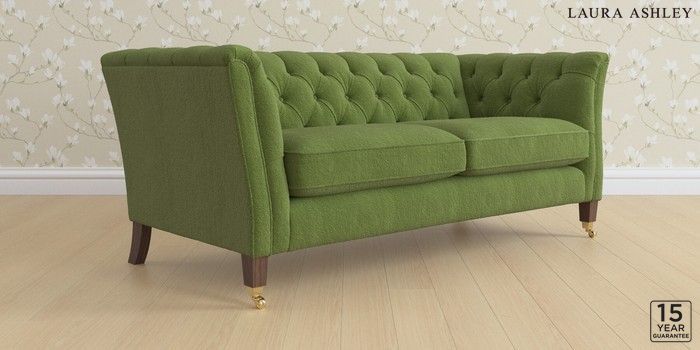 6.12.1 Buy Chatsworth Button Back by Laura Ashley 3 Seater Small Sofa Tichwell Olive Green Straight Brass Castor - Chestnut from the Next UK online shop Click here to use our accessible website