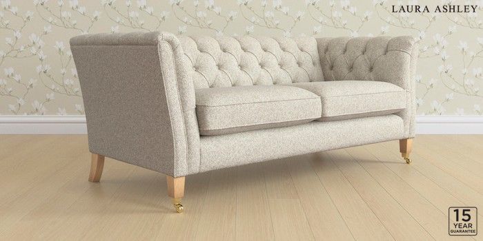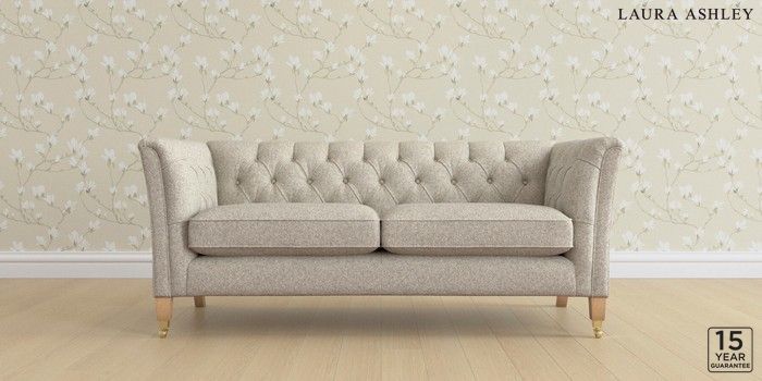 6.12.1 Buy Chatsworth Button Back by Laura Ashley 3 Seater Small Sofa Tichwell Stone Natural Straight Brass Castor - Light Oak from the Next UK online shop Click here to use our accessible website