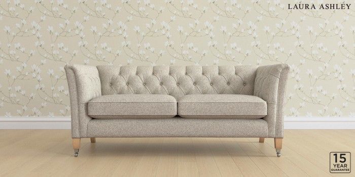 6.12.13 Buy Chatsworth Button Back by Laura Ashley 3 Seater Small Sofa Tichwell Stone Natural Straight Chrome Castor - Light Oak from the Next UK online shop Click here to use our accessible website