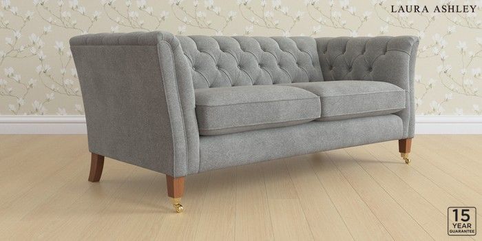 6.12.1 Buy Chatsworth Button Back by Laura Ashley 3 Seater Small Sofa Wooton Dark Steel Grey Straight Brass Castor - Teak from the Next UK online shop Click here to use our accessible website