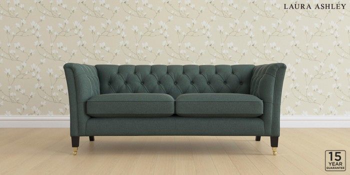 6.12.1 Buy Chatsworth Button Back by Laura Ashley 3 Seater Small Sofa Wooton Forest Green Straight Brass Castor - Black from the Next UK online shop Click here to use our accessible website