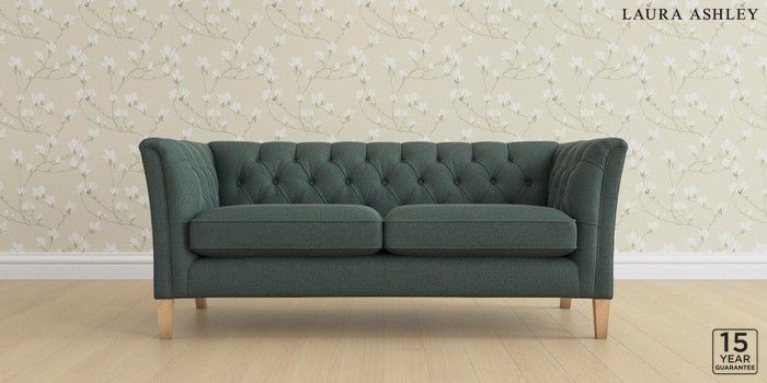 6.12.13 Buy Chatsworth Button Back by Laura Ashley 3 Seater Small Sofa Wooton Forest Green Straight Mid - Light Oak from the Next UK online shop Click here to use our accessible website