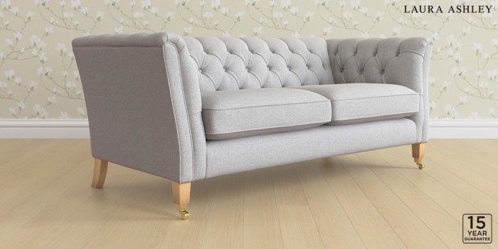 6.12.1 Buy Chatsworth Button Back by Laura Ashley 3 Seater Small Sofa Wooton Pale Steel Grey Straight Brass Castor - Light Oak from the Next UK online shop Click here to use our accessible website