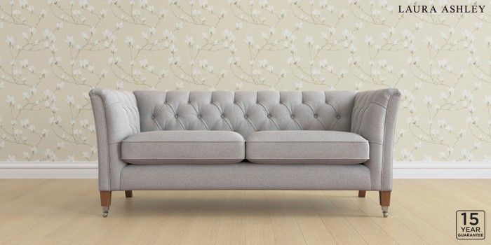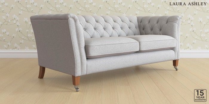 6.12.1 Buy Chatsworth Button Back by Laura Ashley 3 Seater Small Sofa Wooton Pale Steel Grey Straight Chrome Castor - Teak from the Next UK online shop Click here to use our accessible website