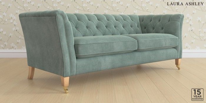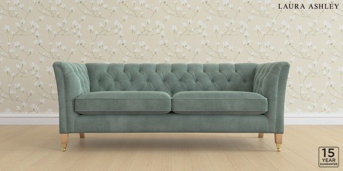 6.12.13 Buy Chatsworth Button Back by Laura Ashley 3 Seater Sofa Ailsworth Fern Green Straight Brass Castor - Light Oak from the Next UK online shop Click here to use our accessible website