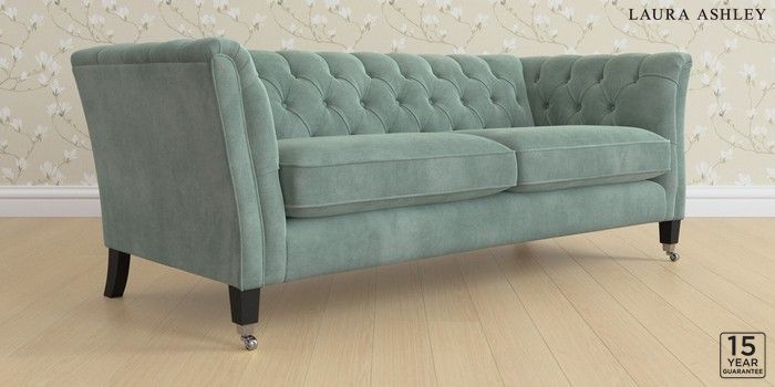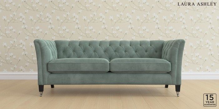 6.12.13 Buy Chatsworth Button Back by Laura Ashley 3 Seater Sofa Ailsworth Fern Green Straight Chrome Castor - Black from the Next UK online shop Click here to use our accessible website