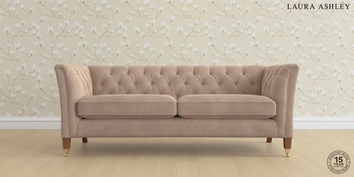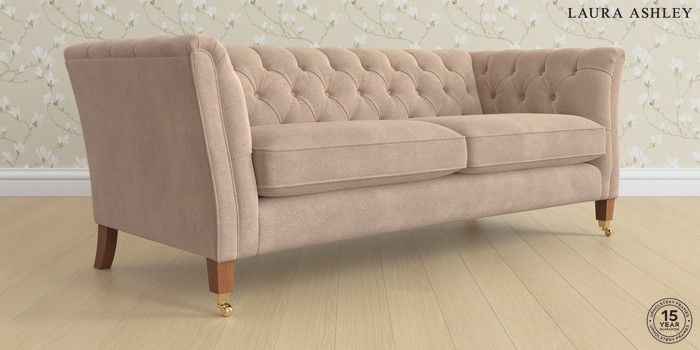 6.12.1 Buy Chatsworth Button Back by Laura Ashley 3 Seater Sofa Ailsworth Mink Natural Straight Brass Castor - Teak from the Next UK online shop Click here to use our accessible website