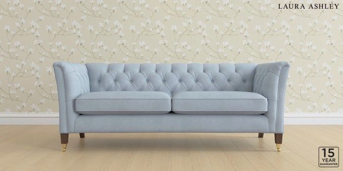 6.12.1 Buy Chatsworth Button Back by Laura Ashley 3 Seater Sofa Ailsworth Newport Blue Straight Brass Castor - Chestnut from the Next UK online shop Click here to use our accessible website