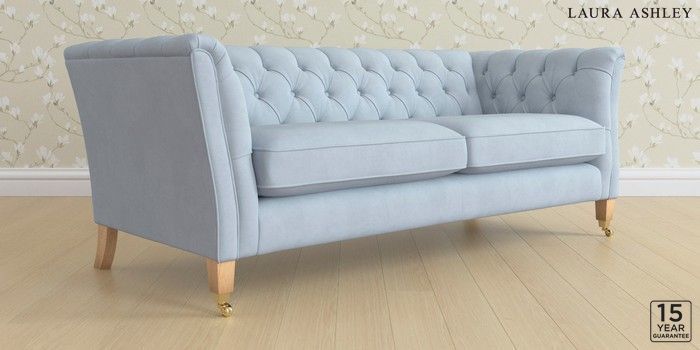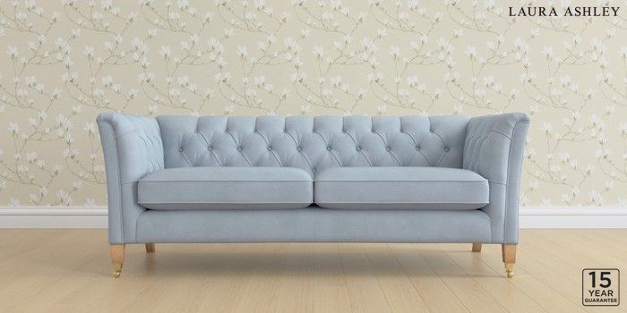 6.12.1 Buy Chatsworth Button Back by Laura Ashley 3 Seater Sofa Ailsworth Newport Blue Straight Brass Castor - Light Oak from the Next UK online shop Click here to use our accessible website