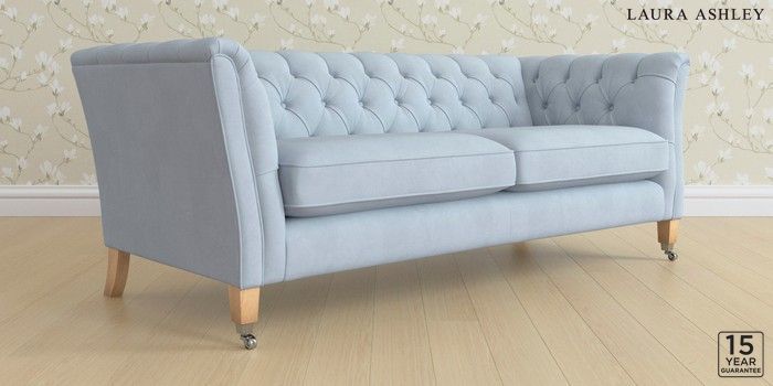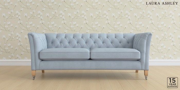 6.12.13 Buy Chatsworth Button Back by Laura Ashley 3 Seater Sofa Ailsworth Newport Blue Straight Chrome Castor - Light Oak from the Next UK online shop Click here to use our accessible website