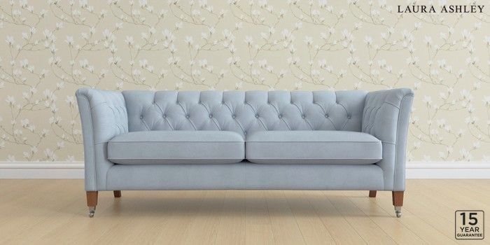 6.12.13 Buy Chatsworth Button Back by Laura Ashley 3 Seater Sofa Ailsworth Newport Blue Straight Chrome Castor - Teak from the Next UK online shop Click here to use our accessible website