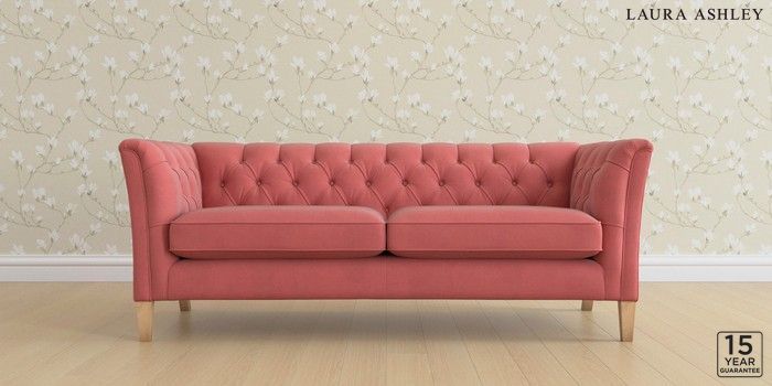 6.12.1 Buy Chatsworth Button Back by Laura Ashley 3 Seater Sofa Ailsworth Old Rose Pink Straight Mid - Light Oak from the Next UK online shop Click here to use our accessible website
