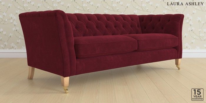 6.12.1 Buy Chatsworth Button Back by Laura Ashley 3 Seater Sofa Alwyn Velvet Burgundy Red Straight Brass Castor - Light Oak from the Next UK online shop Click here to use our accessible website