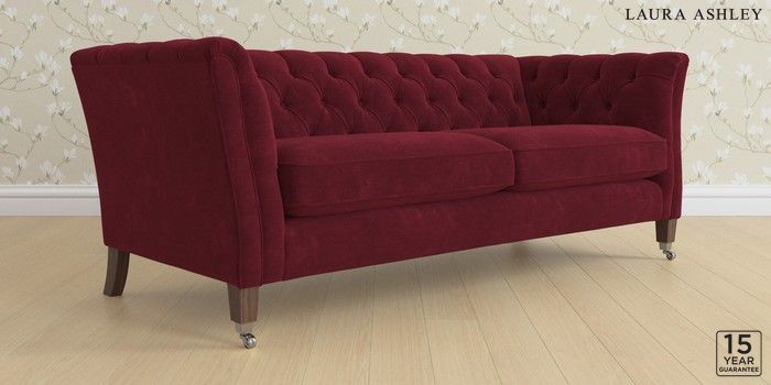 6.12.1 Buy Chatsworth Button Back by Laura Ashley 3 Seater Sofa Alwyn Velvet Burgundy Red Straight Chrome Castor - Chestnut from the Next UK online shop Click here to use our accessible website