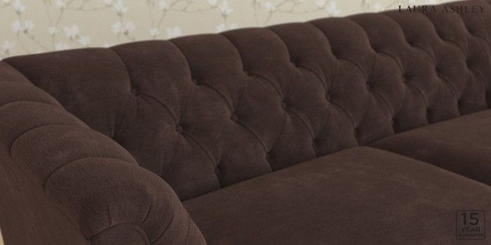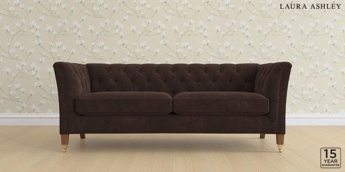 6.12.1 Buy Chatsworth Button Back by Laura Ashley 3 Seater Sofa Alwyn Velvet Chocolate Brown Straight Brass Castor - Teak from the Next UK online shop Click here to use our accessible website