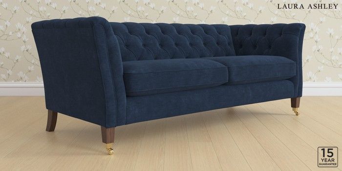 6.12.1 Buy Chatsworth Button Back by Laura Ashley 3 Seater Sofa Alwyn Velvet Midnight Navy Straight Brass Castor - Chestnut from the Next UK online shop Click here to use our accessible website