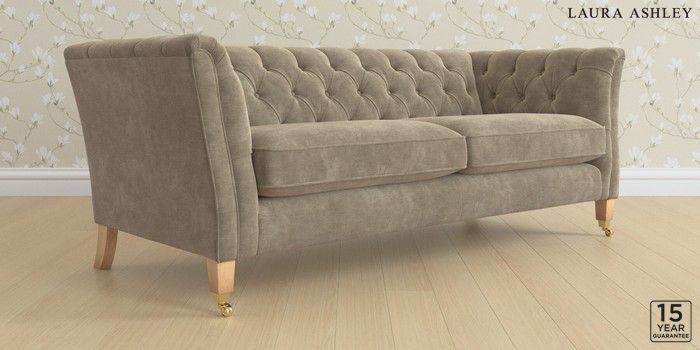 6.12.1 Buy Chatsworth Button Back by Laura Ashley 3 Seater Sofa Alwyn Velvet Truffle Natural Straight Brass Castor - Light Oak from the Next UK online shop Click here to use our accessible website