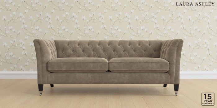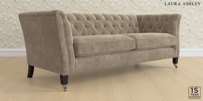 6.12.1 Buy Chatsworth Button Back by Laura Ashley 3 Seater Sofa Alwyn Velvet Truffle Natural Straight Chrome Castor - Black from the Next UK online shop Click here to use our accessible website