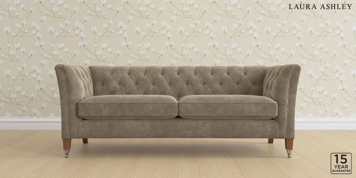 6.12.1 Buy Chatsworth Button Back by Laura Ashley 3 Seater Sofa Alwyn Velvet Truffle Natural Straight Chrome Castor - Teak from the Next UK online shop Click here to use our accessible website