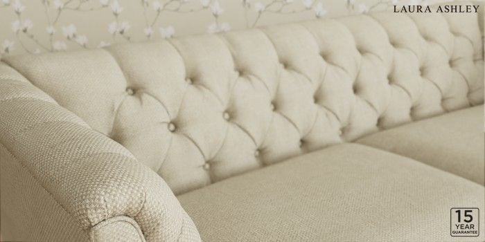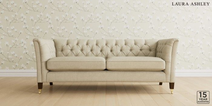 6.12.1 Buy Chatsworth Button Back by Laura Ashley 3 Seater Sofa Anneliese Natural Straight Brass Castor - Chestnut from the Next UK online shop Click here to use our accessible website