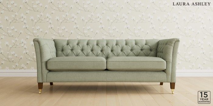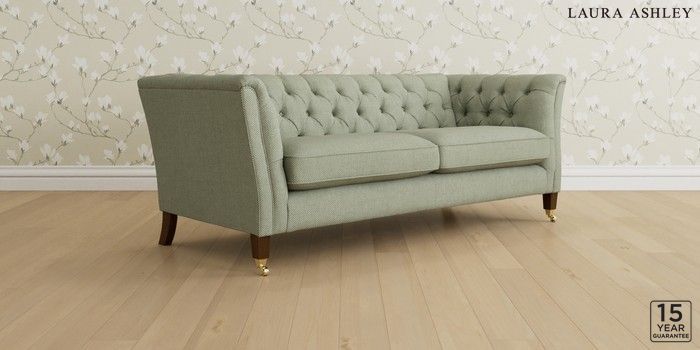 6.12.1 Buy Chatsworth Button Back by Laura Ashley 3 Seater Sofa Anneliese Sage Green Straight Brass Castor - Teak from the Next UK online shop Click here to use our accessible website