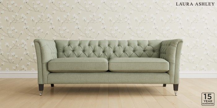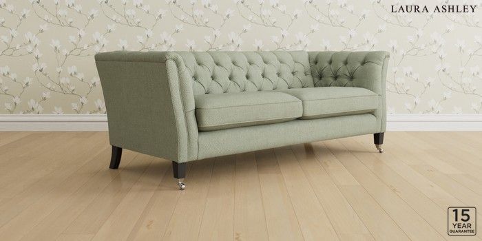 6.12.13 Buy Chatsworth Button Back by Laura Ashley 3 Seater Sofa Anneliese Sage Green Straight Chrome Castor - Black from the Next UK online shop Click here to use our accessible website