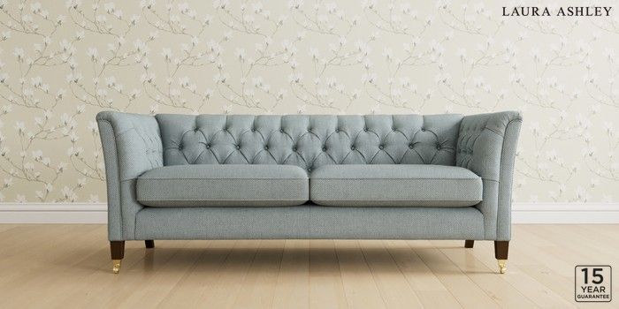 6.12.1 Buy Chatsworth Button Back by Laura Ashley 3 Seater Sofa Anneliese Seaspray Blue Straight Brass Castor - Chestnut from the Next UK online shop Click here to use our accessible website