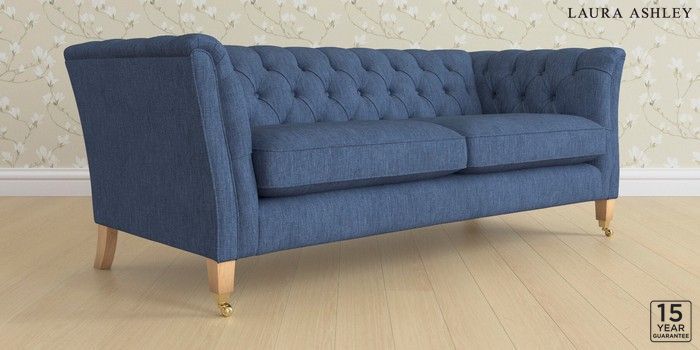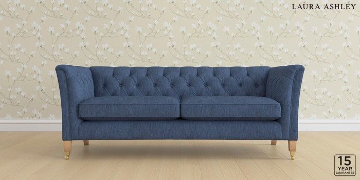 6.12.1 Buy Chatsworth Button Back by Laura Ashley 3 Seater Sofa Bainton Midnight Navy Straight Brass Castor - Light Oak from the Next UK online shop Click here to use our accessible website