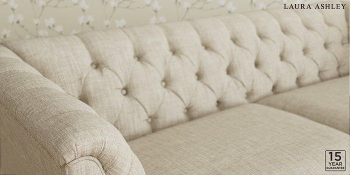 6.12.13 Buy Chatsworth Button Back by Laura Ashley 3 Seater Sofa Bainton Natural Straight Brass Castor - Chestnut from the Next UK online shop Click here to use our accessible website