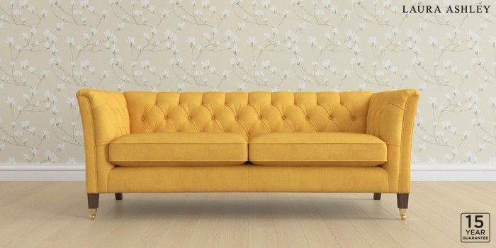 6.12.13 Buy Chatsworth Button Back by Laura Ashley 3 Seater Sofa Bainton Ochre Yellow Straight Brass Castor - Chestnut from the Next UK online shop Click here to use our accessible website