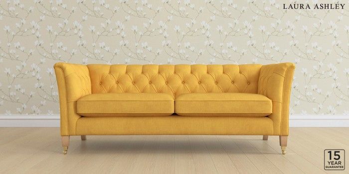 6.12.1 Buy Chatsworth Button Back by Laura Ashley 3 Seater Sofa Bainton Ochre Yellow Straight Brass Castor - Light Oak from the Next UK online shop Click here to use our accessible website