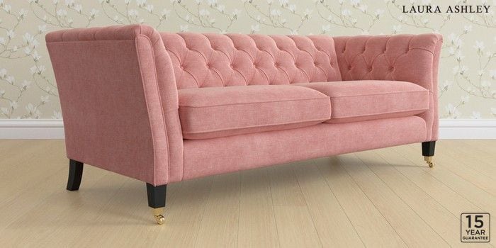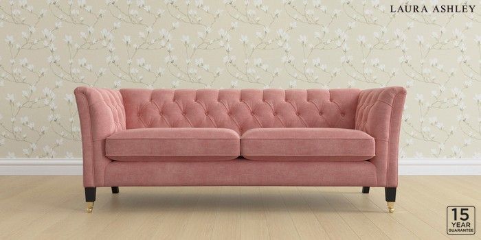 6.12.1 Buy Chatsworth Button Back by Laura Ashley 3 Seater Sofa Bainton Old Rose Pink Straight Brass Castor - Black from the Next UK online shop Click here to use our accessible website