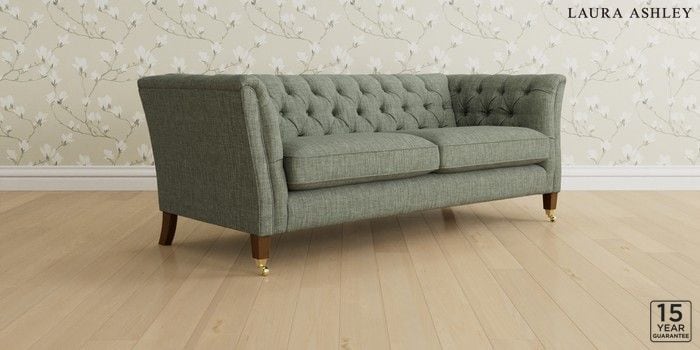 6.12.1 Buy Chatsworth Button Back by Laura Ashley 3 Seater Sofa Bainton Sage Green Straight Brass Castor - Teak from the Next UK online shop Click here to use our accessible website