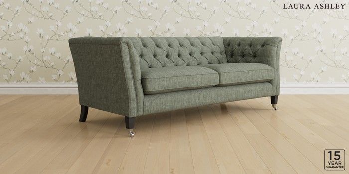 6.12.13 Buy Chatsworth Button Back by Laura Ashley 3 Seater Sofa Bainton Sage Green Straight Chrome Castor - Black from the Next UK online shop Click here to use our accessible website