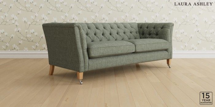 6.12.13 Buy Chatsworth Button Back by Laura Ashley 3 Seater Sofa Bainton Sage Green Straight Chrome Castor - Light Oak from the Next UK online shop Click here to use our accessible website