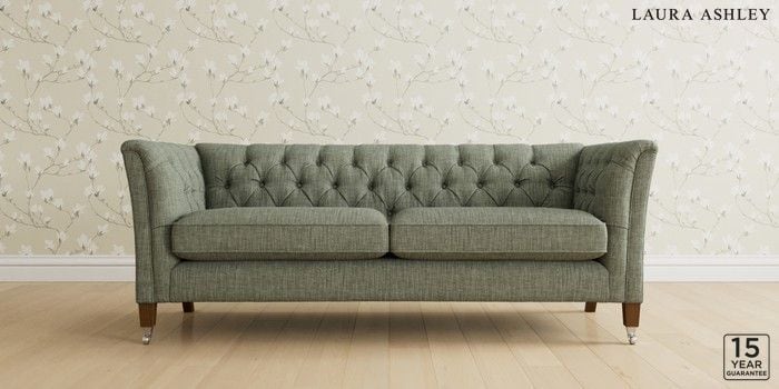6.12.13 Buy Chatsworth Button Back by Laura Ashley 3 Seater Sofa Bainton Sage Green Straight Chrome Castor - Teak from the Next UK online shop Click here to use our accessible website