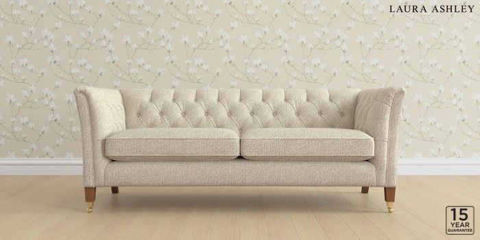 6.12.1 Buy Chatsworth Button Back by Laura Ashley 3 Seater Sofa Borwick Natural Straight Brass Castor - Teak from the Next UK online shop Click here to use our accessible website