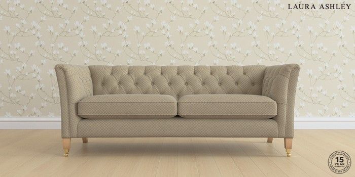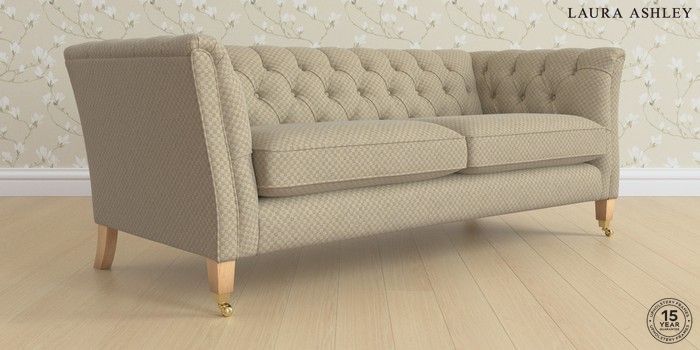 6.12.1 Buy Chatsworth Button Back by Laura Ashley 3 Seater Sofa Chequers Hazelnut Natural Straight Brass Castor - Light Oak from the Next UK online shop Click here to use our accessible website