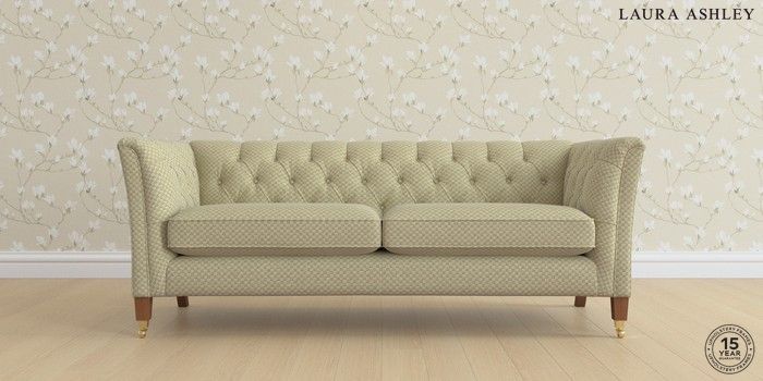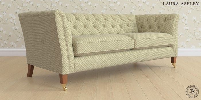 6.12.1 Buy Chatsworth Button Back by Laura Ashley 3 Seater Sofa Chequers Hedgerow Green Straight Brass Castor - Teak from the Next UK online shop Click here to use our accessible website