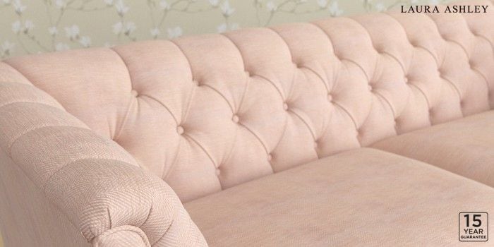6.12.1 Buy Chatsworth Button Back by Laura Ashley 3 Seater Sofa Edwin Chenille Blush Pink Straight Brass Castor - Teak from the Next UK online shop Click here to use our accessible website
