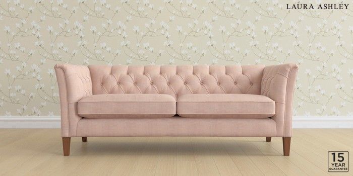 6.12.1 Buy Chatsworth Button Back by Laura Ashley 3 Seater Sofa Edwin Chenille Blush Pink Straight Mid - Teak from the Next UK online shop Click here to use our accessible website