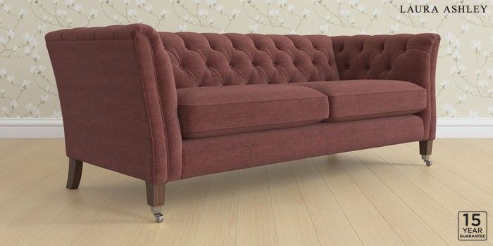 6.12.13 Buy Chatsworth Button Back by Laura Ashley 3 Seater Sofa Edwin Chenille Burgundy Red Straight Chrome Castor - Chestnut from the Next UK online shop Click here to use our accessible website