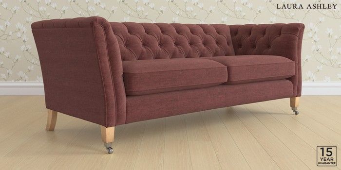 6.12.13 Buy Chatsworth Button Back by Laura Ashley 3 Seater Sofa Edwin Chenille Burgundy Red Straight Chrome Castor - Light Oak from the Next UK online shop Click here to use our accessible website