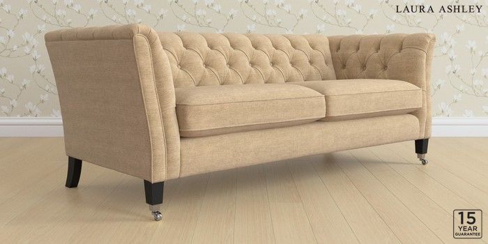 6.12.1 Buy Chatsworth Button Back by Laura Ashley 3 Seater Sofa Edwin Chenille Gold Natural Straight Chrome Castor - Black from the Next UK online shop Click here to use our accessible website