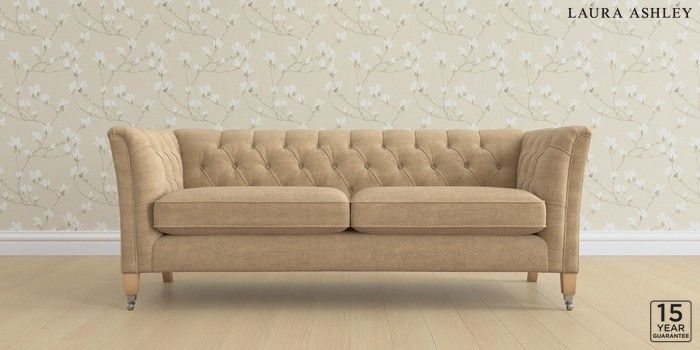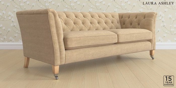 6.12.1 Buy Chatsworth Button Back by Laura Ashley 3 Seater Sofa Edwin Chenille Gold Natural Straight Chrome Castor - Light Oak from the Next UK online shop Click here to use our accessible website
